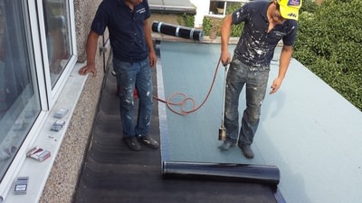 2. Flat Roof Installation: Durable Firestone rubber roofing for a commercial property.